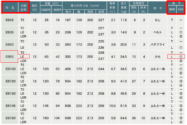 | 製品名 | EB65-LE 【L型端子】 GS ユアサ ディープサイクル バッテリー / 蓄電池 / 非常用電源 |