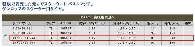製品名: タイヤ 80-90 2本 ダンロップ スクーター バイク タイヤ 【1本あたり2030円】DUNLOP RUNSCOOT D307 【前後輪共通】 【RCP】