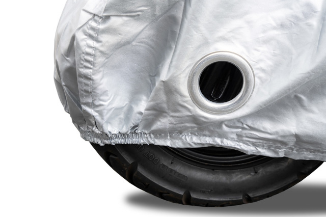 商品説明: AQ-TRC-LL 鍵穴付タフタ バイクカバー LLサイズ●前輪部鍵穴付き(Φ40mmアイレット)中央下部の紐絞りによる風飛び防止対策、二本針縫製による堅牢縫製、固定ベルト付きのバイクカバーです!●二本針ミシンによる縫製により、丈夫な造りとなっております。盗難防止、マンション等の駐輪場で自転車からの傷防止にもおすすめします。●軽量・コンパクトで持ち運びも便利。軽量なので女性でもカバーのかけ外しが容易。コンパクトに収納できるタフタ生地を使用。ツーリングなど持ち運びにもかさばりません。●大型ロックにも対応可能な直径40mm のアイレットを前輪側に装備。カバー前方の目印になります。●風飛び防止効果抜群!バイクカバー固定ベルト(全長約2300mm)が付属。ワンタッチバックルを連結し、ベルトの長さを調節するだけ!カバーのばたつきや風飛びを抑止します。●堅牢縫製:二本針ミシンによる丈夫な縫製。●紫外線反射、シルバーコーティング:樹脂パーツの白化や塗装膜劣化の原因となる紫外線を反射。バイクカバーがダメージを肩代わりし、愛車を保護。