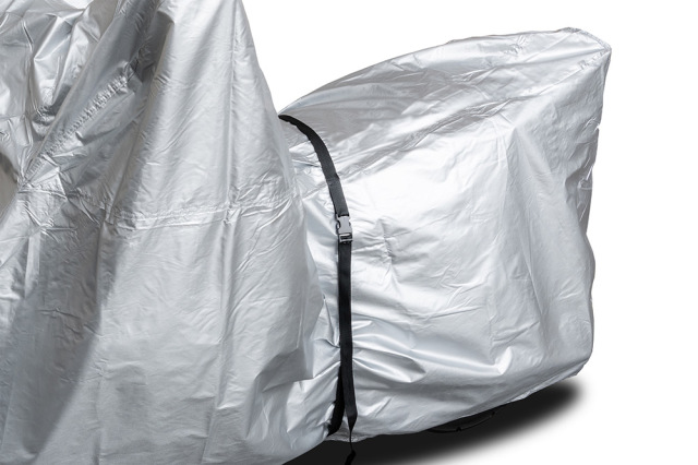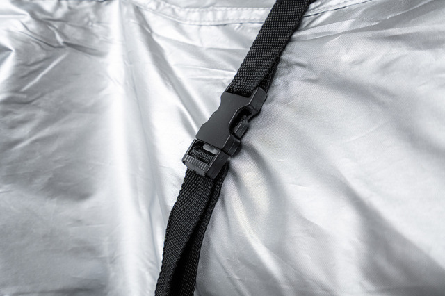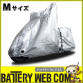 商品説明: AQ-TRC-M 鍵穴付タフタ バイクカバー Mサイズ●前輪部鍵穴付き(Φ40mmアイレット)中央下部の紐絞りによる風飛び防止対策、二本針縫製による堅牢縫製、固定ベルト付きのバイクカバーです!●二本針ミシンによる縫製により、丈夫な造りとなっております。盗難防止、マンション等の駐輪場で自転車からの傷防止にもおすすめします。●軽量・コンパクトで持ち運びも便利。軽量なので女性でもカバーのかけ外しが容易。コンパクトに収納できるタフタ生地を使用。ツーリングなど持ち運びにもかさばりません。●大型ロックにも対応可能な直径40mm のアイレットを前輪側に装備。カバー前方の目印になります。●風飛び防止効果抜群!バイクカバー固定ベルト(全長約2300mm)が付属。ワンタッチバックルを連結し、ベルトの長さを調節するだけ!カバーのばたつきや風飛びを抑止します。●堅牢縫製:二本針ミシンによる丈夫な縫製。●紫外線反射、シルバーコーティング:樹脂パーツの白化や塗装膜劣化の原因となる紫外線を反射。バイクカバーがダメージを肩代わりし、愛車を保護。