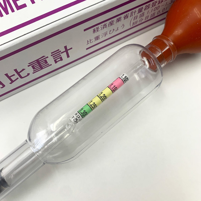 | 材質 | 本体:プラスチック 浮標:ガラス スポイド部:ゴム | |||