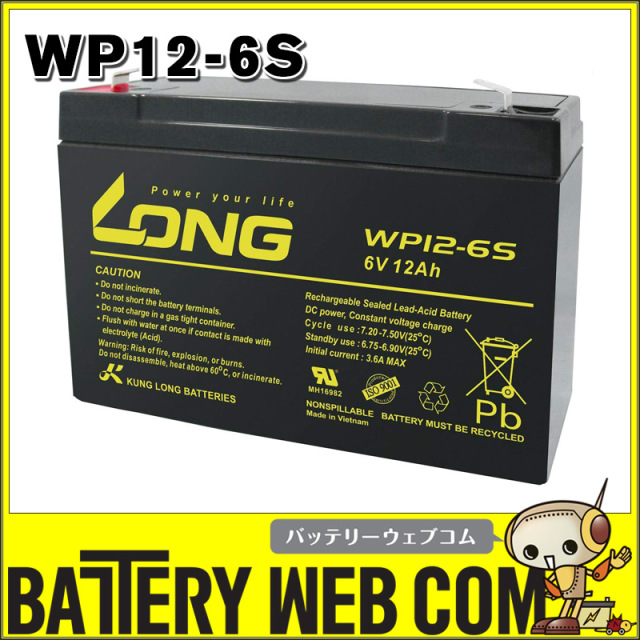 WP12-6S LONGバッテリー ロング 制御弁式鉛蓄電池 UPS 非常電源 送料無料(一部地域送料加算)