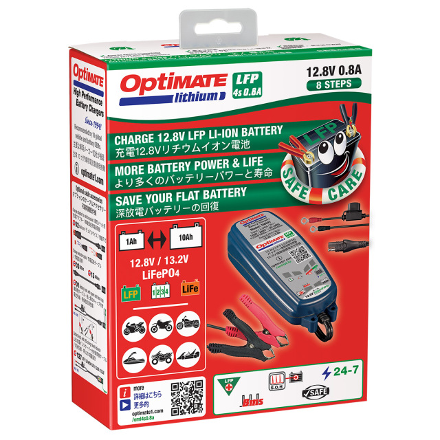 オプティメイト バッテリー メンテナー TM-497 12.8V 0.8A リチウムバッテリー充電器 Optimate Lithium 4s TecMATE テックメイト BMSリセット機能 リチュウム リチウム リチューム イオン 専用 LiFePO4